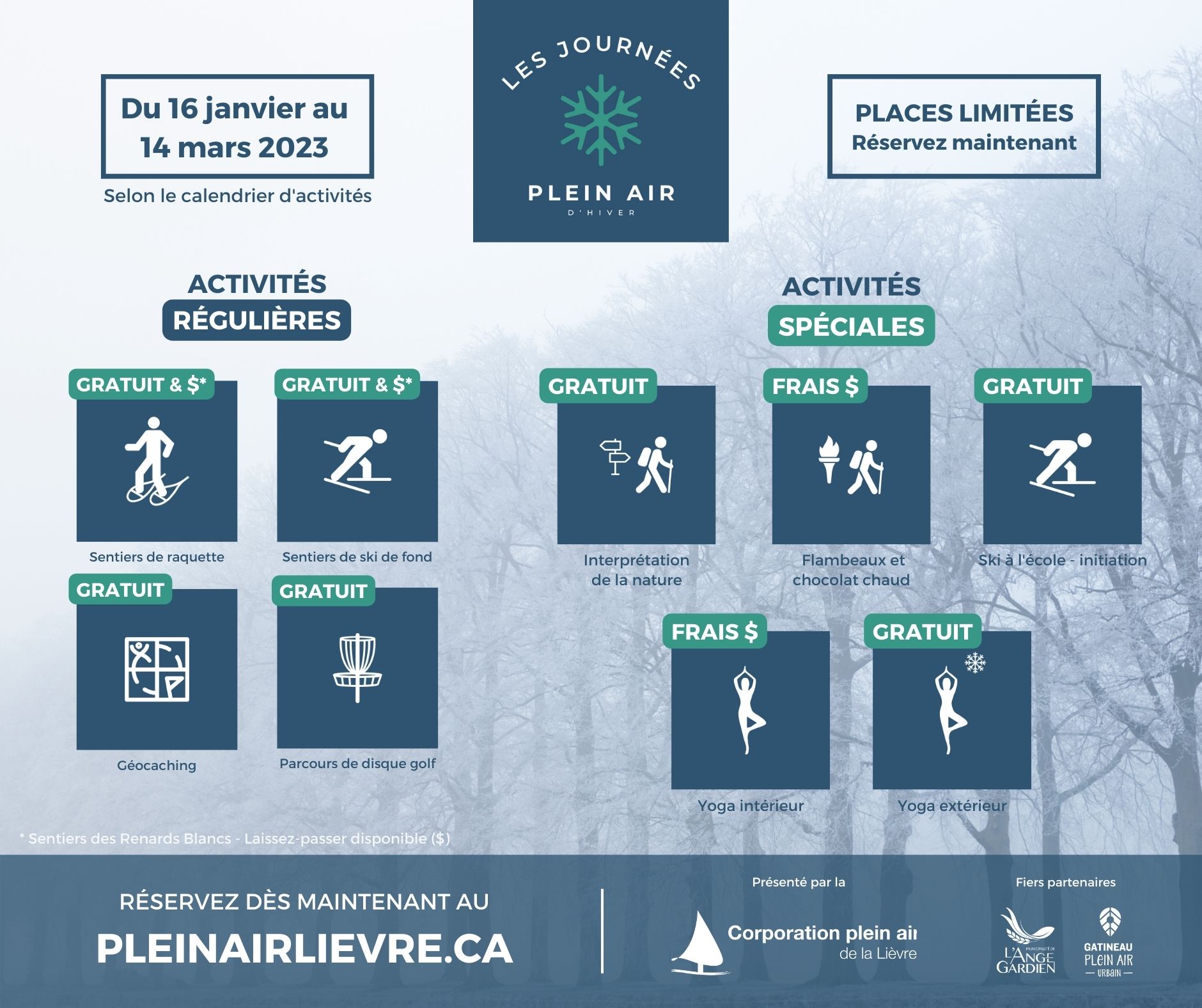 Pour vous inscrire aux activités : https://pleinairlievre.ca/boutique/