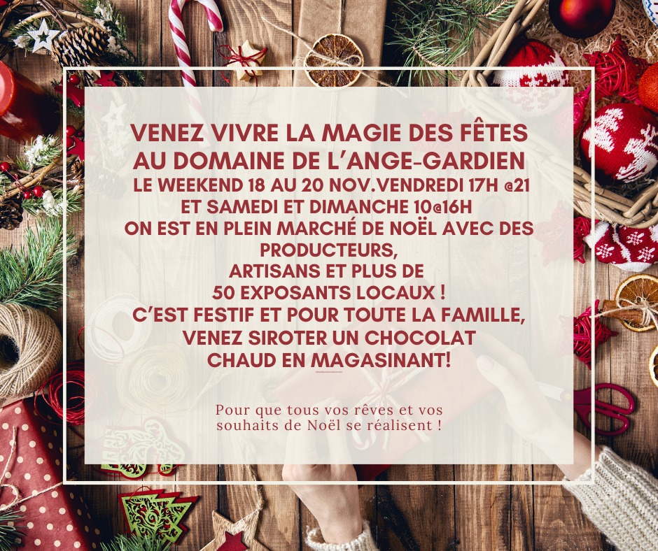 Le Domaine de l’Ange-Gardien (1031, ch. Pierre-Laporte) organise un magnifique Marché de Noël ! Nous invitons les citoyens à y prendre part.