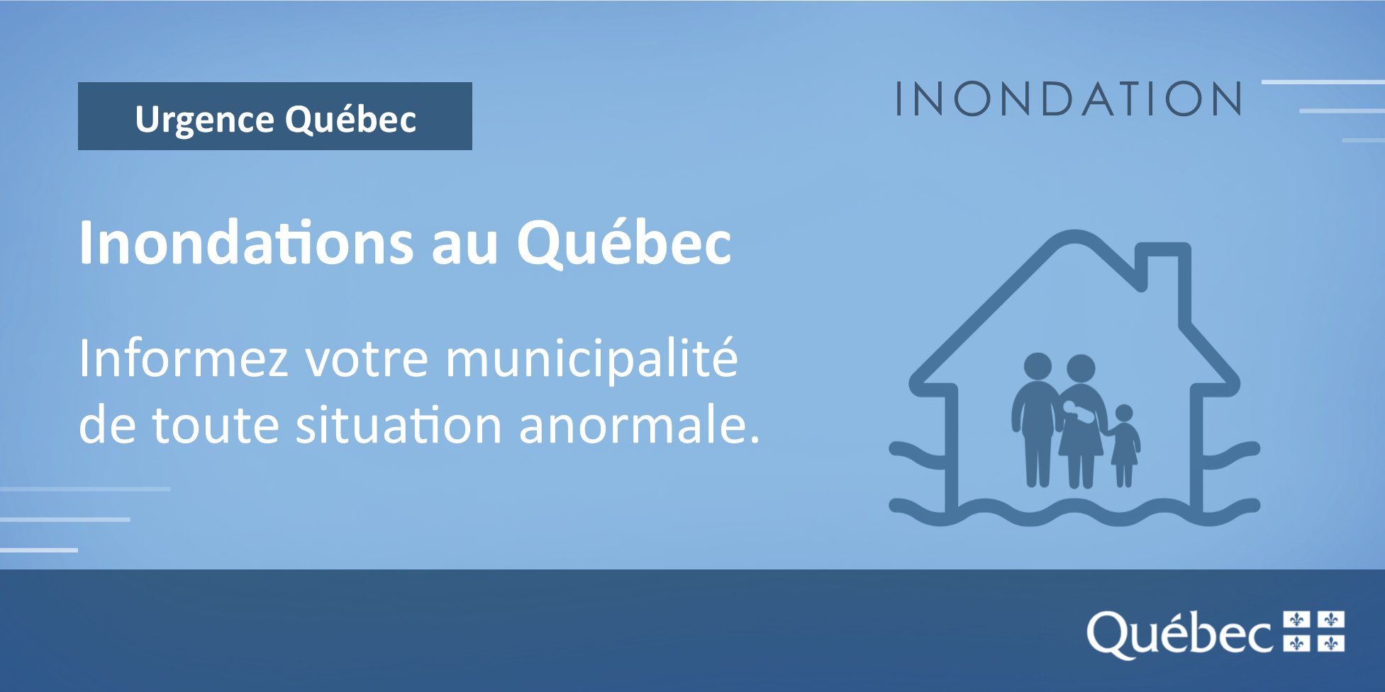 - Sachez quoi faire en cas d’inondation : Quebec.ca/inondation.