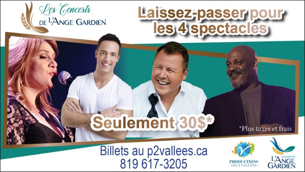 Les Productions Les 2 vallées, en partenariat avec la Municipalité de L’Ange-Gardien, présentera une série de spectacles Les Concerts de L’Ange-Gardien, cet été, sur le site de Champboisé de L’Ange-Gardien, situé au 1521, route 309.